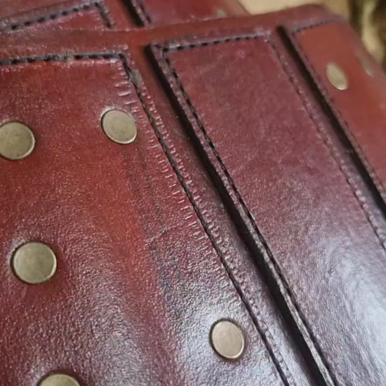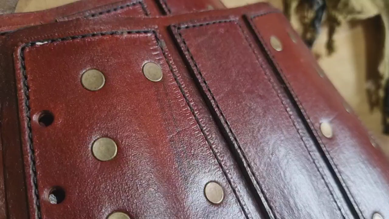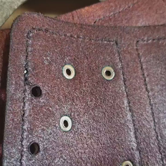 Express your inner berserker with this pair, made from 2mm tooling leather and secured with waxed cotton thread and rivets for that extra durability.