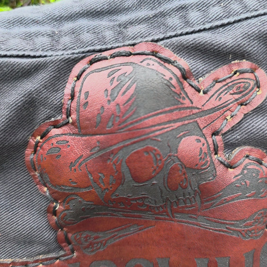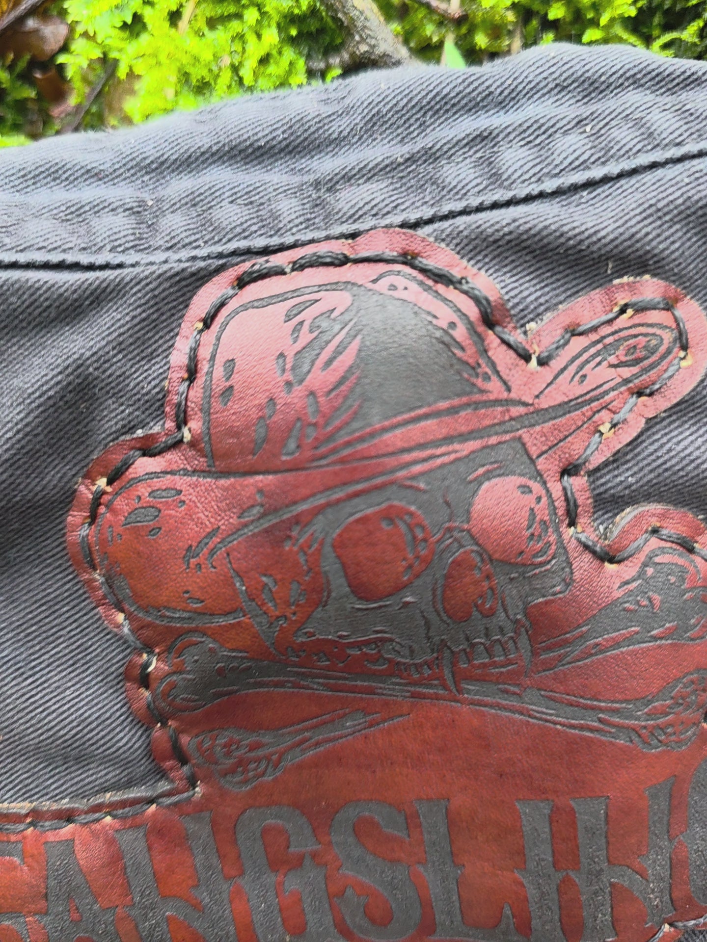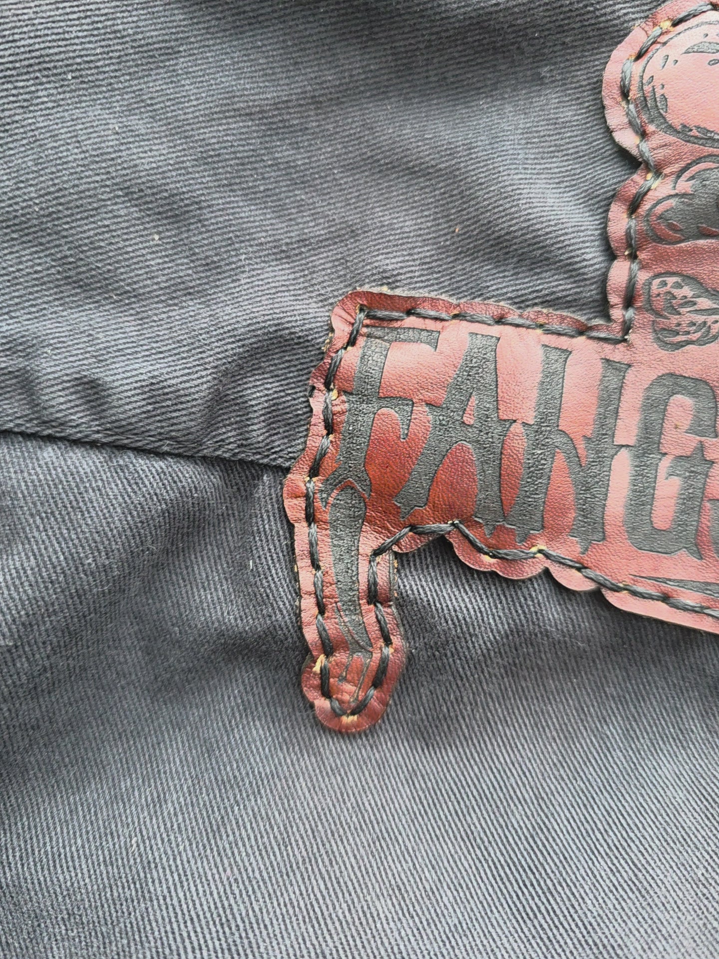Wear the legend. The Fangslinger leather patch brings the undead swagger of this country rock phenomenon straight to your jacket, vest, or bag.