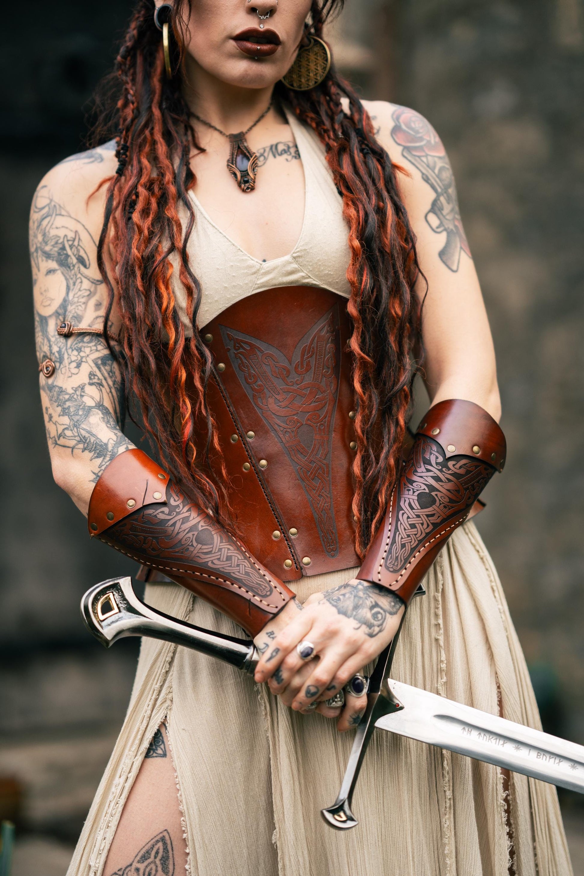 Featuring a Nordic style knotwork pattern, this corset made from 2mm veg tan tooling leather is great for LARP events as well as gigs. Robust, sturdy and beautiful, it will endure whatever you throw at it.