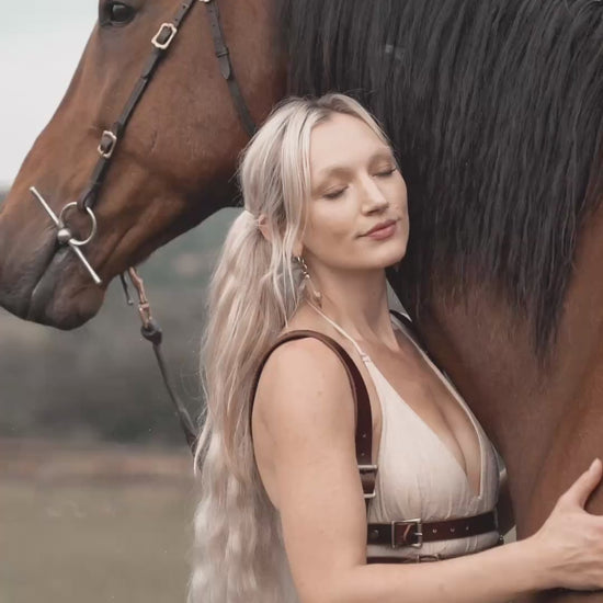 This beautiful body harness is is both incredibly sturdy and shapely. Made from 3mm buffalo leather this will outlast any party animal and cinch you in while doing it!