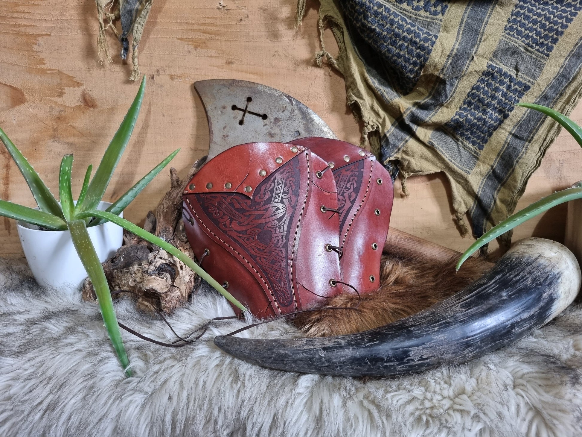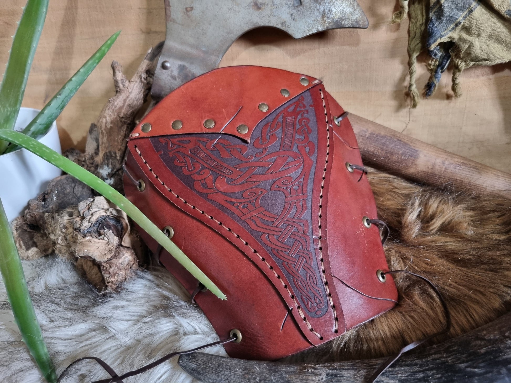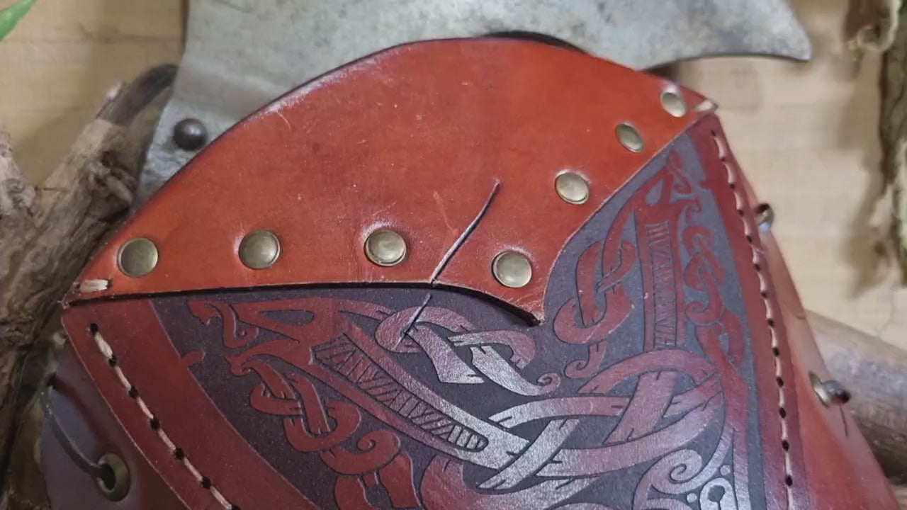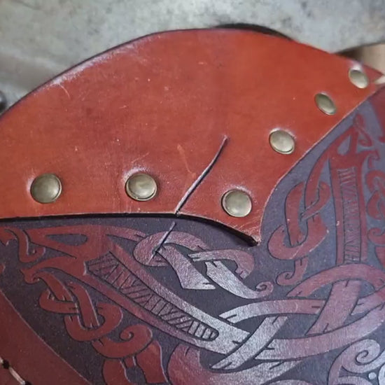 Nordic inspired vambraces that will go well with any LARP, cosplay, dress up or even as an every day wear if you're the adventurous type with your outfits. Featuring a Nordic knotwork detail they are sure to make a statement.